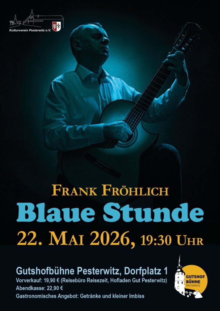 | 22.05.26 | Gutshofbühne | „Blaue Stunde“ – Solokonzert Frank Fröhlich |